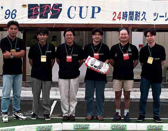 ここのチームはRC総合卸売問屋さんのチーム、ミツボシゴールデンビルズです。彼等のお陰で私たちはRCがのびのびとできると言っても過言ではありません。ちなみに今回は1/8レーシングの重鎮、ワンオーワン代表の森田正氏がメンバーに参加していました。