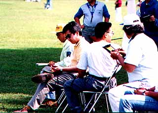 数人の方が一斉に飛ばすのですが、フライト時間を計測するジャッジは1機に1名ずつです。