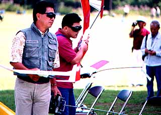 | 写真右:さぁ、フライトの準備OK! サングラスに隠されていますが真剣な眼差しです |